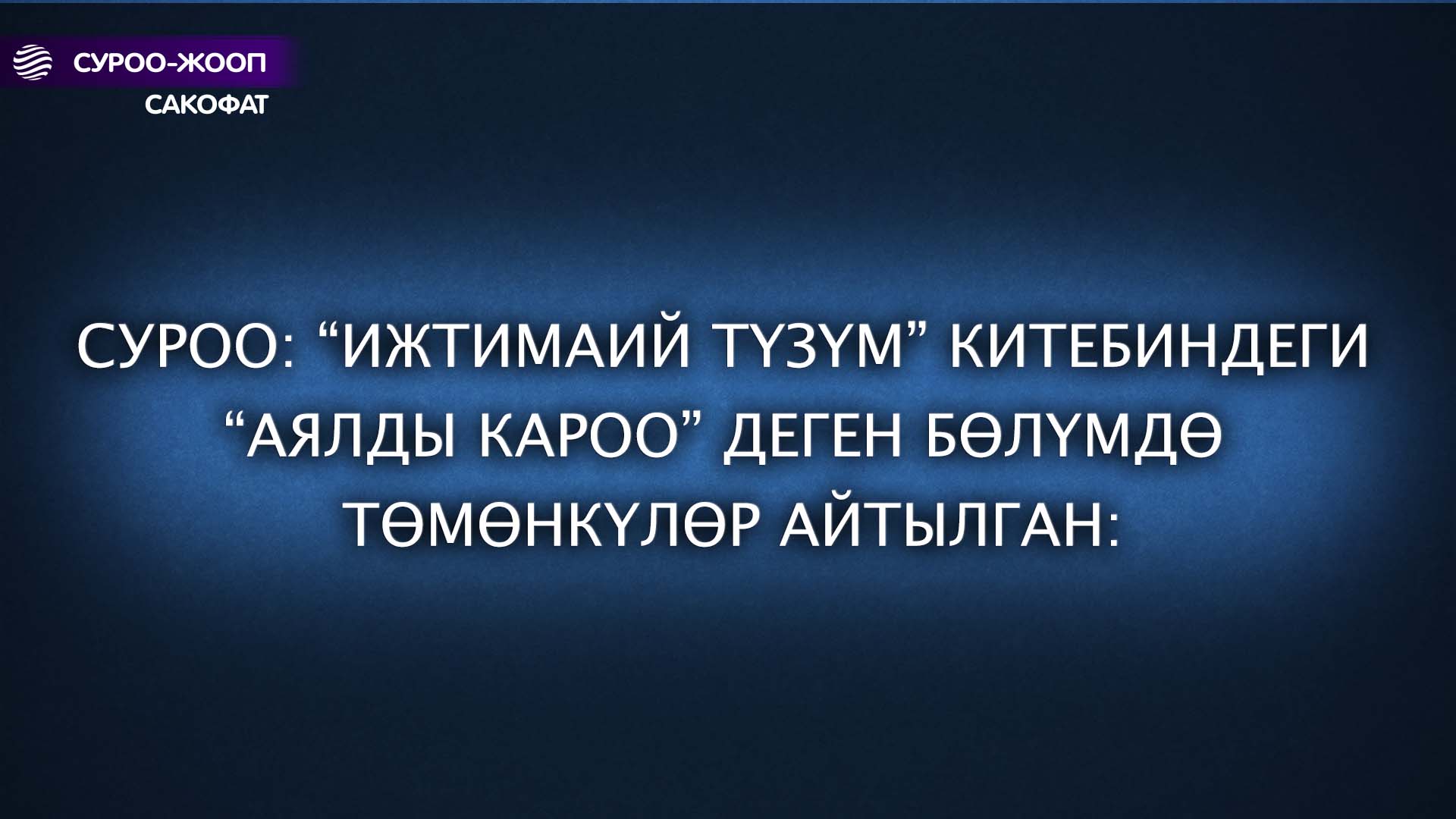 Суроо: “Ижтимаий түзүм” китебиндеги “Аялды кароо” деген бөлүмдө төмөнкүлөр айтылган: