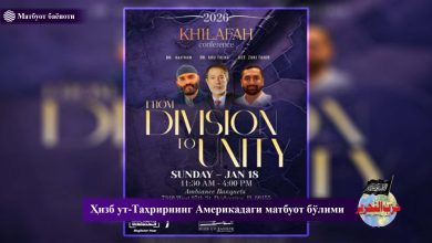 Матбуот баёноти Тарқоқликдан бирлик сари 2026 йилги Халифалик конференцияси Чикаго, Иллинойс – Ҳизб ут-Таҳрир Америкада ўзининг йиллик конференциясини муваффақиятли ўтказди.…