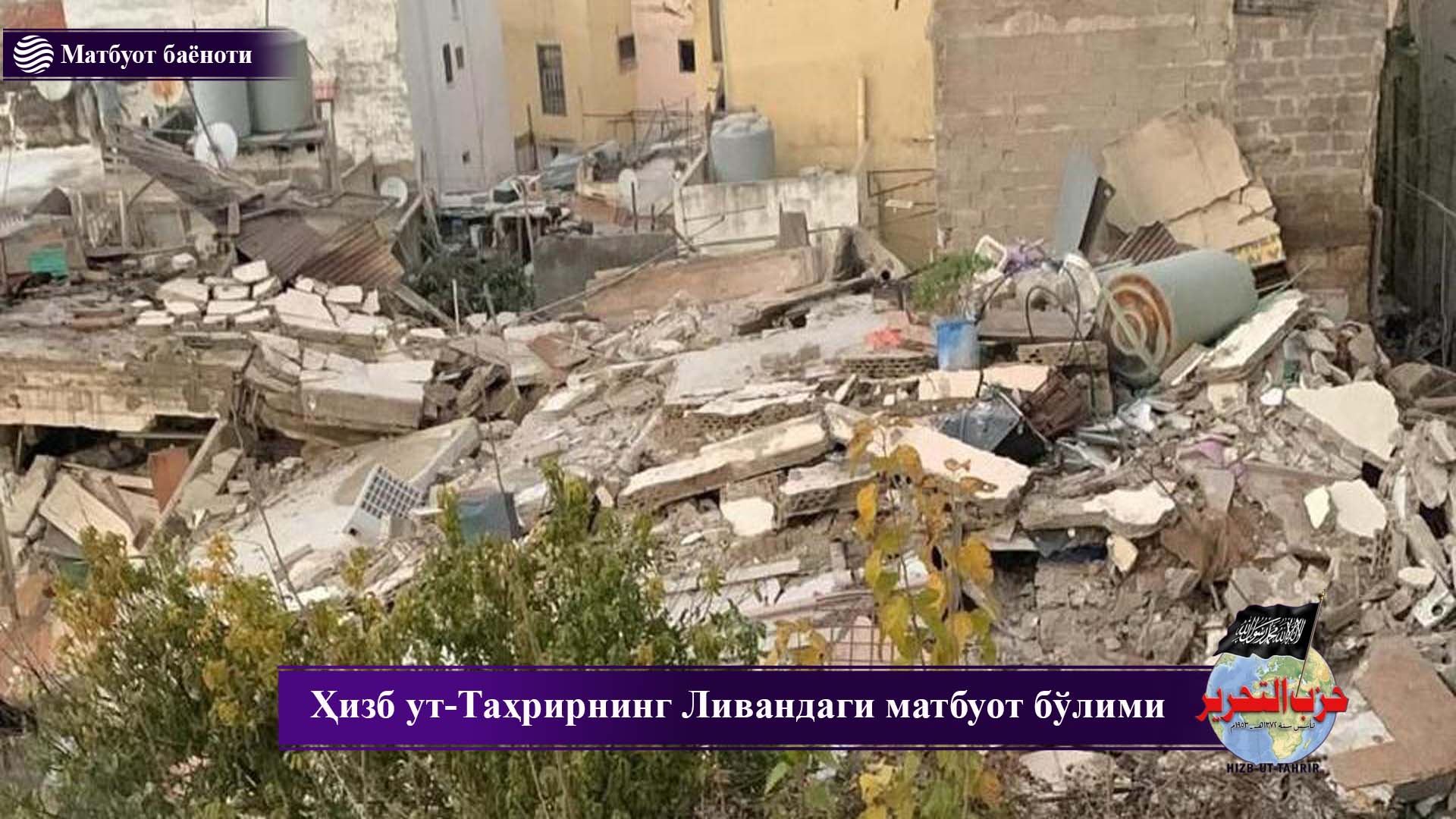 Биз Триполи шаҳридаги Қубба маҳалласида юз берган аянчли фожиа ҳамда шаҳар аҳолисидан бир неча кишининг ҳаётига зомин бўлган эски биноларнинг кетма-кет қулаши ортидан жамоатчиликка қуйидагиларни таъкидлаймиз: